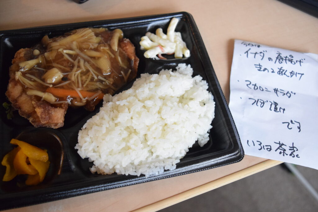 「きのこのあんかけがかかったイナダの唐揚げ弁当」でした!